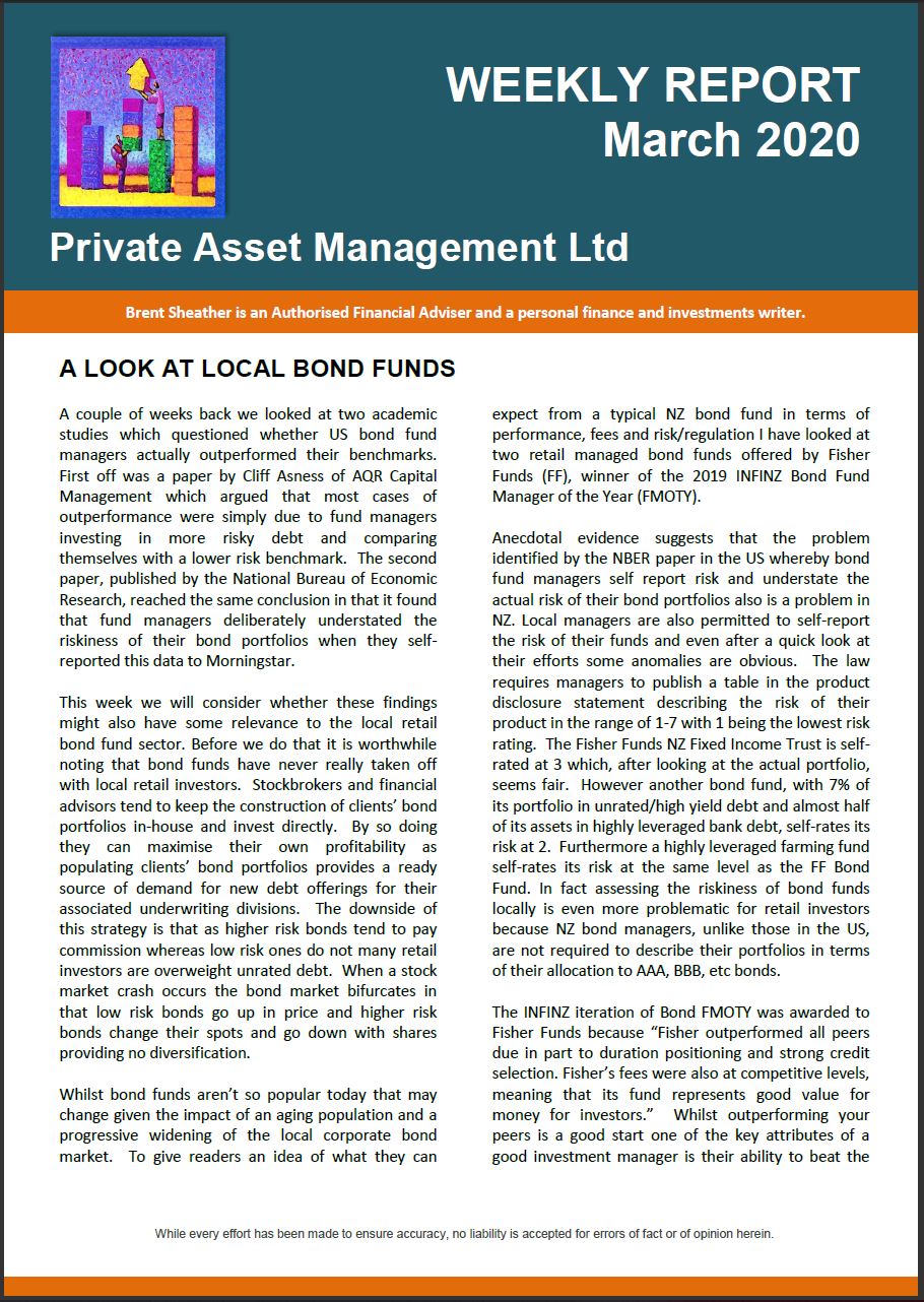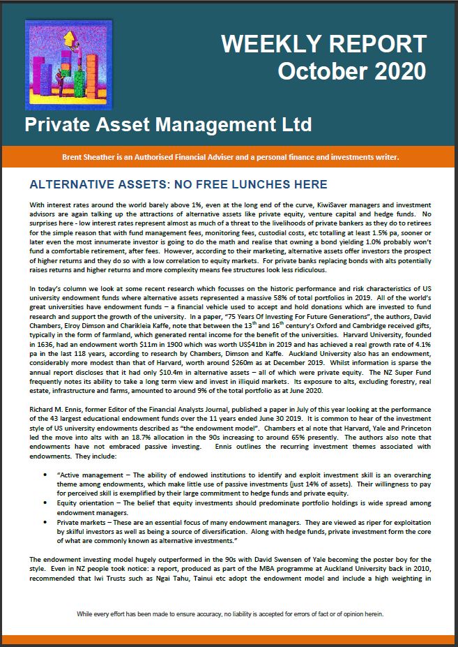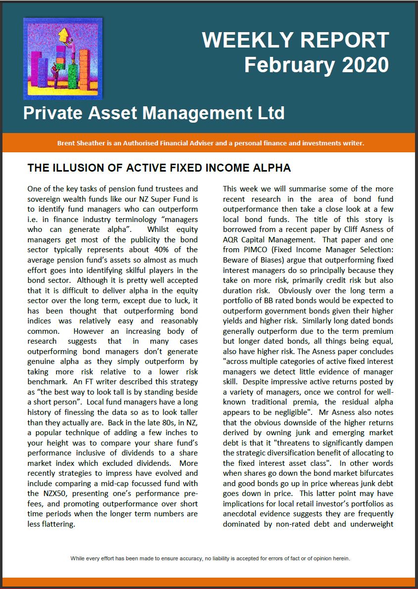 Even though I have been a member of INFINZ and its predecessor organization, the Society of Investment Analysts since 1986, I have always been pretty cynical of these FMOTY awards. Indeed they have a very checkered past in NZ, particularly those awards where the winners were chosen by financial advisors. Although the criteria wasn’t always obvious one suspects it had more to do with the amount of commissions paid and the extent to which the said fund manager sponsored pseudo-CPD junkets in exotic locations. Back in the day Armstrong Jones dominated the fund manager of the year awards and was even voted fund manager of the decade (LOL). In 1998 a client came to see me with a question – he had recently invested $500,000 through my firm in a range of managed funds and noticed that not one of the managed funds were managed by Armstrong Jones. Yet he had just read, in a full page newspaper ad, that Armstrong Jones had been named (trumpets in the background) fund manager of the decade. Why, he said, weren’t we buying Armstrong Jones? I thought this could make an interesting Herald article so after researching Armstrong Jones’ performance and fees I faxed a draft to Armstrong Jones asking them to advise any errors of fact. Shortly thereafter I got an email from a Mr C A J Clark, senior associate of Bell Gully Buddle Weir, telling me that “our client remains concerned that the article you intend to publish will contain inaccuracies and this letter is to put you on notice that our client, in all respects, reserves the right to pursue appropriate legal action upon publication”. Armstrong Jones refused to advise any errors of fact so that effectively stopped publication of the story. It is ironic that it was more than likely the silly old Armstrong Jones unit holders who were funding the legal action. Thankfully Armstrong Jones is no longer around.