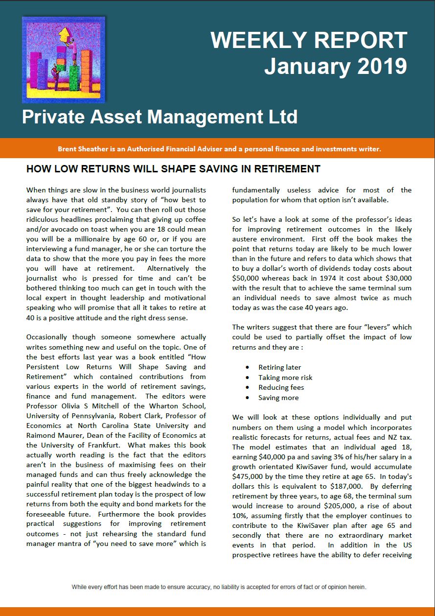 So Kiwisavers be careful – it’s a jungle out there and remember the old rule that if it looks too good to be true it’s probably a lie. In two weeks’ time we will consider a number of frequently asked questions on Kiwisaver and construct our answers based on a reasonable low return scenario. To preview the results - some of the answers are highly dependent on return assumptions.